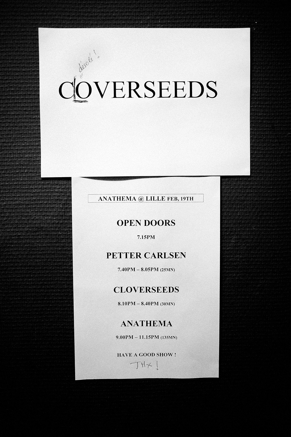 En 2010, je suis parti en roadtrip avec le groupe Cloverseeds qui faisait la première partie de la tournée française d’Anathema. Dans mon sac à dos : un vieil appareil photo argentique russe et un autre numérique en fin de vie. Voici des images de ce que l’on ne voit pas lorsqu’on va voir un concert !